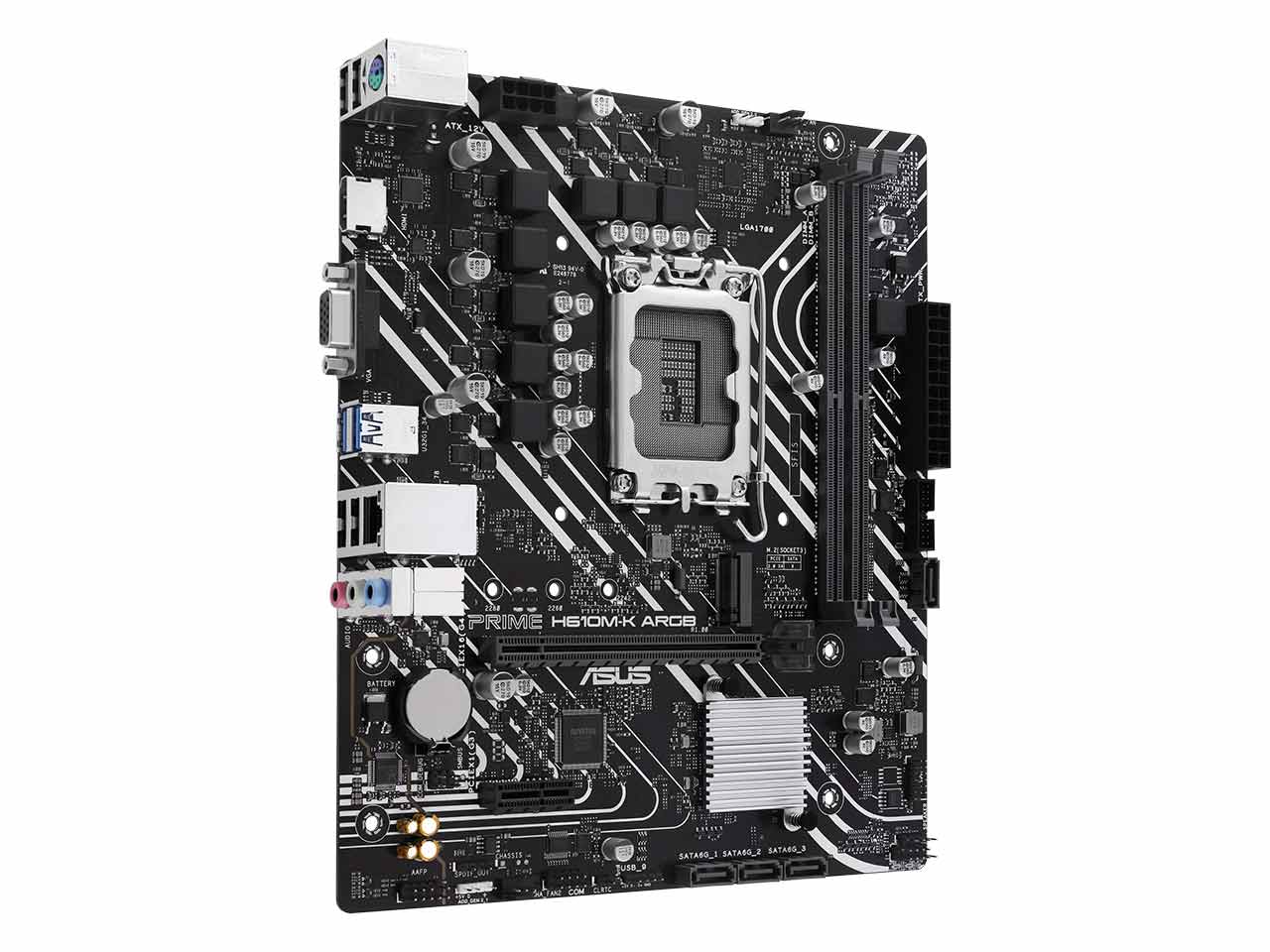 مادربرد ASUS PRIME H610M-K ARGB DDR5 یکی از محصولات جدید و پرطرفدار شرکت ASUS است که با امکانات منحصر به فرد خود، توجه بسیاری را به خود جلب کرده است. این مادربرد بهطور خاص برای کاربرانی طراحی شده است که به دنبال ساخت سیستمهای کامپیوتری با نورپردازی ARGB و امکانات جذاب هستند.