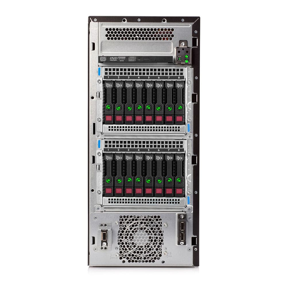 شرکت HPE برای سرور ML110 Gen10 دو نوع مدل 8LFF و 16SFF را در نظر گرفته است. در واقع در این دو مدل فقط باکس هارد ها متفاوت و سایر قطعات تفاوت چندانی ندارند. در مدل 8LFF می توان تا 8 هارد سایز بزرگ 3.5 اینچی و در مدل 16SFF می توان تا 16 هارد سایز کوچک 2.5 اینچی استفاده نمود. جایگاه درایو نوری هم در بالای هارد ها قرار دارد. LED های وضعیت، دکمه پاور، دو پورت USB و یک پورت مدیریتی iLO نیز در پنل جلویی وجود دارد.
