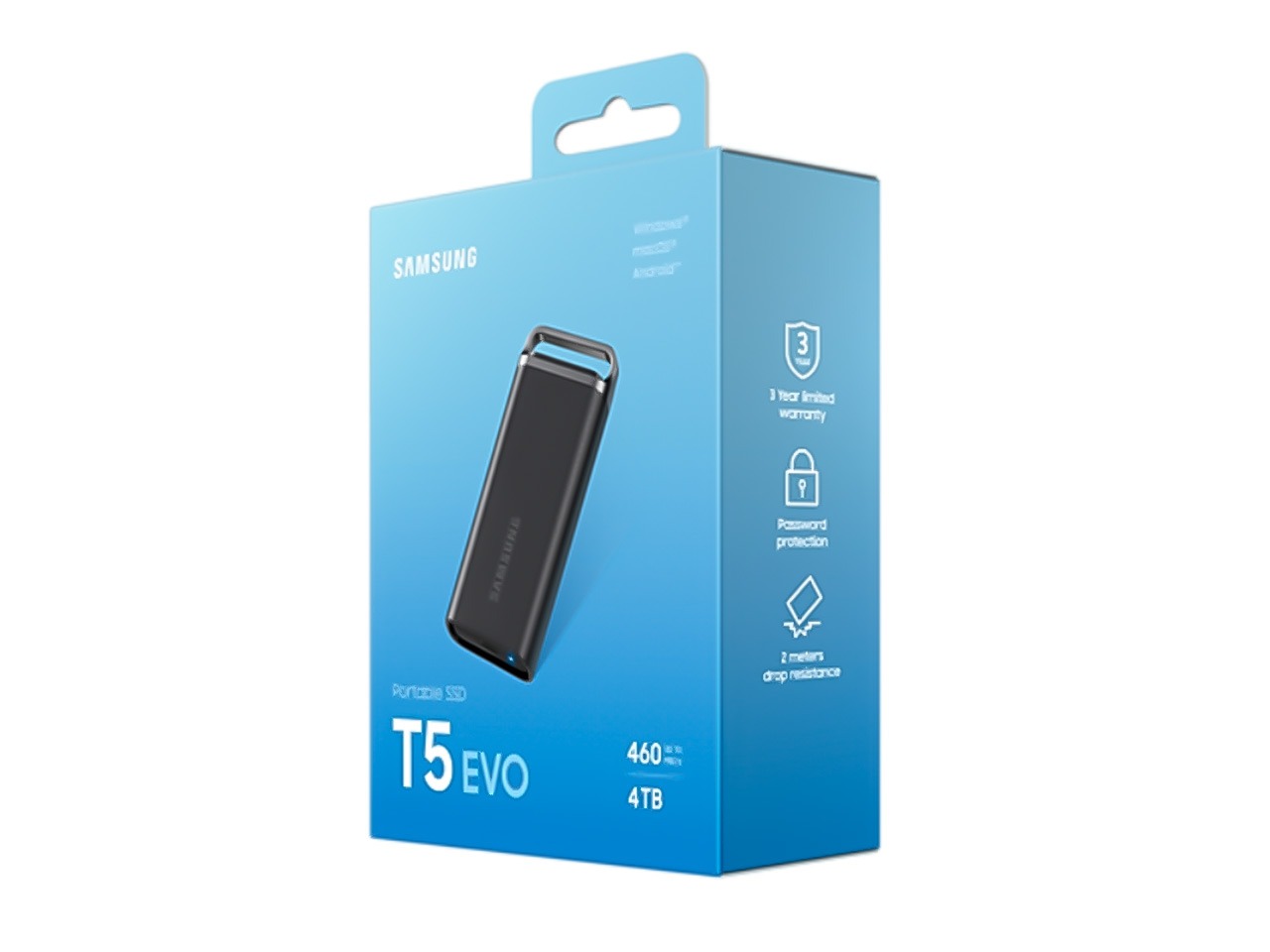 یکی از پرتقاضاترین دستهها در محصولات ذخیرهساز، اساسدیهای قابل حمل هستند. مقاومت در برابر ضربه، امکان جابهجایی، سرعت انتقال بیشتر نسبت به هارد دیسک و عرضه در ظرفیتهای متنوع از جمله دلایلی هستند که باعث شده کاربران این محصولات را به هارد دیسکهای متداول ترجیح دهند. سامسونگ با عرضه این محصول بیشتر بازار اساسدیهای ۲.۵ اینچیِ پایینرده را هدف قرار داده است. عرضه در سه نسخه ۲ ترابایتی، ۴ ترابایتی و مهمتر از همه ۸ ترابایتی یکی از نقاط قوت T5 EVO در برابر سایر اساسدیهای با باس SATA 3 همچون NS100 لکسار یا حتی 870EVO سامسونگ است.