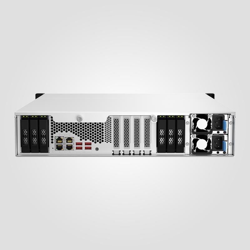 این کیونپ با برخورداری از 18 فضای دیسک برای HDD و SSD، پورتهای 10GbE و توسعهپذیری بالا، این مدل برای کارهای سنگین مانند مجازیسازی، پشتیبانگیری و مدیریت فایلهای بزرگ ایدهآل است. افزون بر این، منبع تغذیه پشتیبان (Redundant) این دستگاه از وقفههای ناشی از قطعی برق جلوگیری میکند و دوام عملیات را تضمین مینماید.